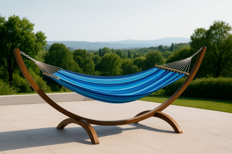 Hamac en Toile Polyester Bleu avec Support en Bois