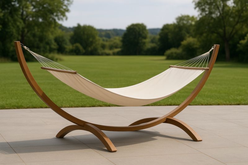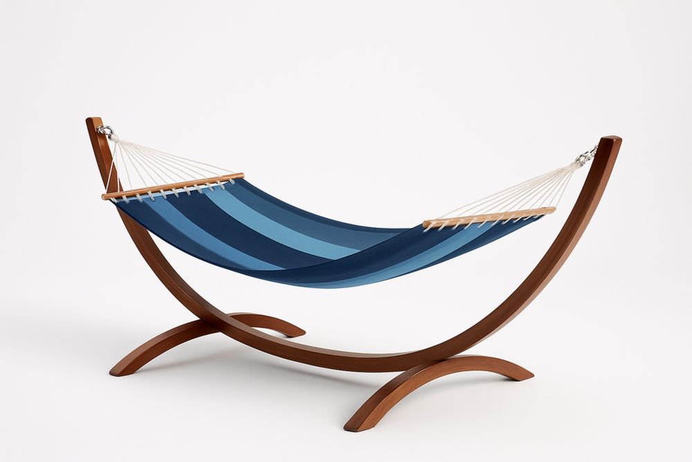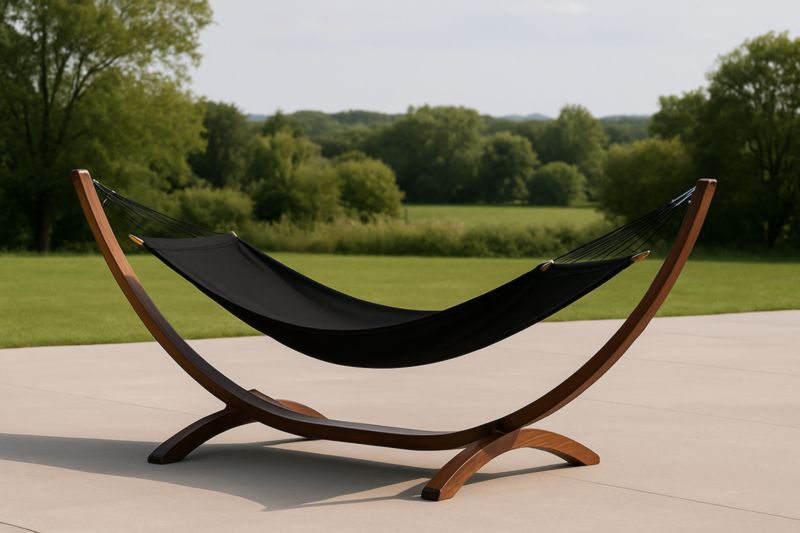 Hamac avec support en bois courbé en chêne et toile en polyester noire